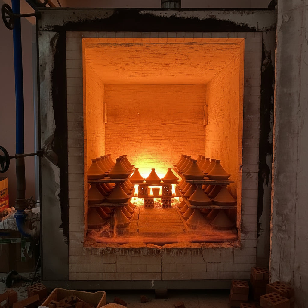 The kiln heats through radiant energy, gradually strengthening the clay structure without direct flame contact.