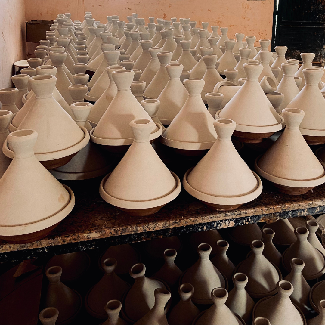 The tagines are shaped on the wheel by hand, allowing precise control over thickness, symmetry, and profile.