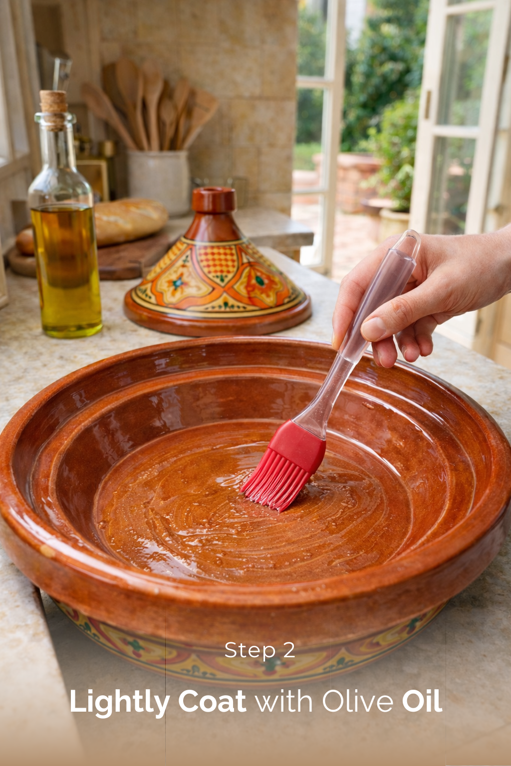 Before cooking for the first time, season your tagine properly to strengthen the clay and prevent cracking.